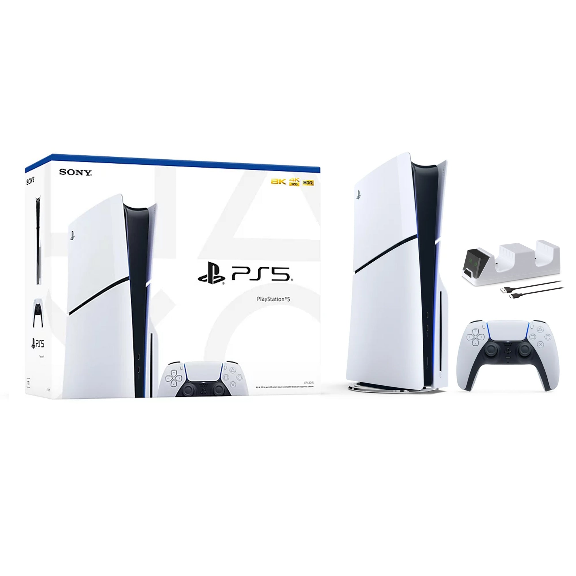 - PlayStation 5 Slim Disc Edition Console, Controller and Mytrix Controller Charger - White, Slim PS5 1TB PCIe SSD Gaming Console PlayStation 5 Slim Disc Edition Console, Controller and Mytrix Controller Charger - White, Slim PS5 1TB PCIe SSD Gaming Console