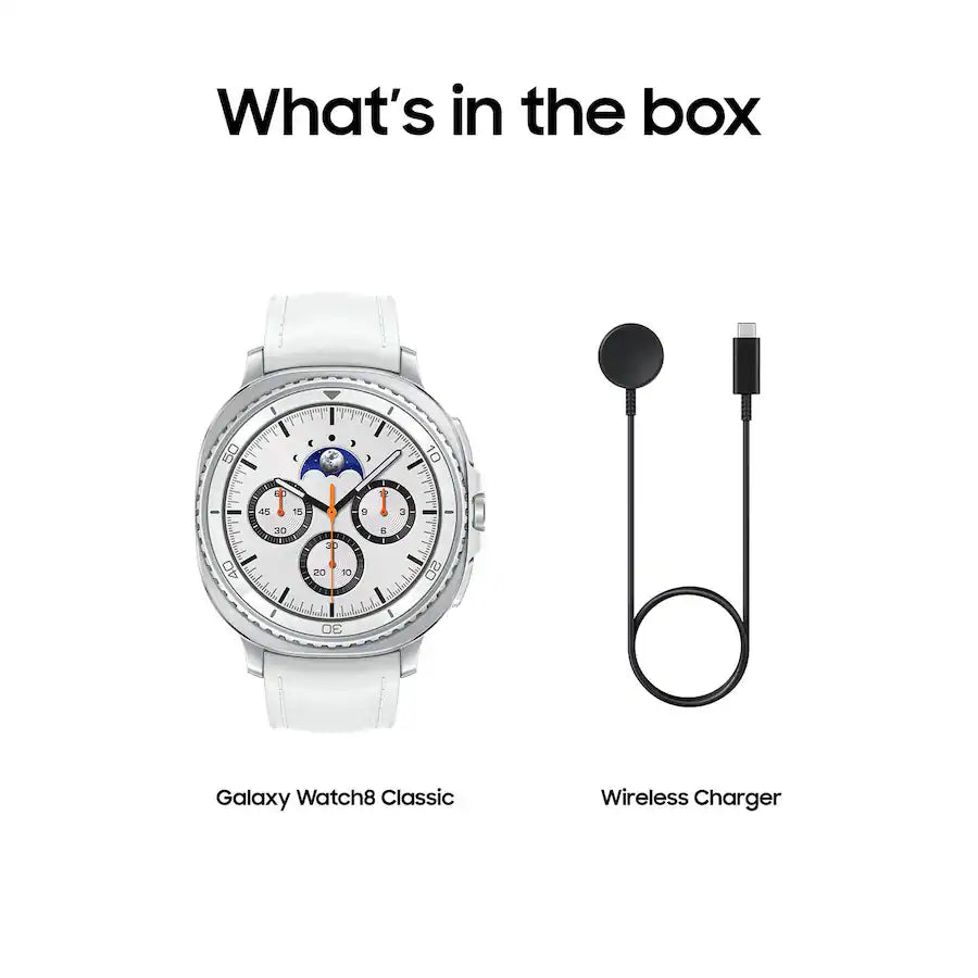 - Samsung Galaxy 2025 Watch8 Classic Stainless Steel Smartwatch, 46mm Touchscreen, Galaxy AI, Wellness Snapshot, 30 Hours Usage - White Samsung Galaxy 2025 Watch8 Classic Stainless Steel Smartwatch, 46mm Touchscreen, Galaxy AI, Wellness Snapshot, 30 Hours Usage - White